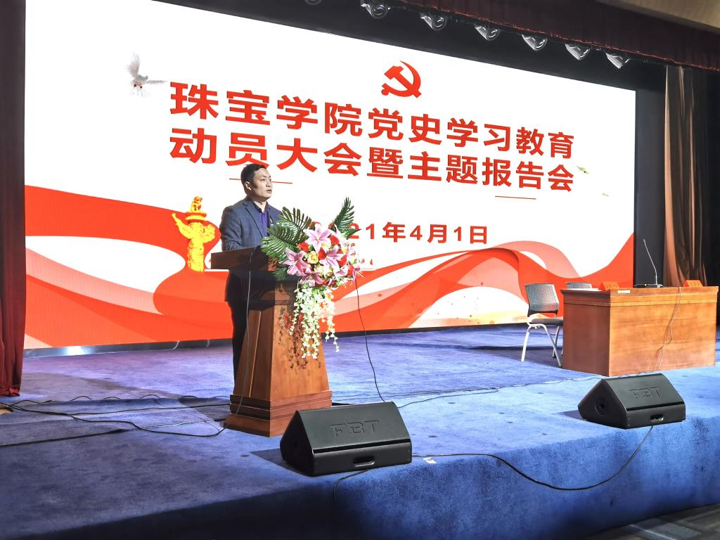 (通讯员蔡智全 摄影 苏晓瑜)4月1日上午,香蕉视频 (武汉)香蕉视频 党史学习教育动员大会暨主题报告会在珠宝楼多功能厅举行,学院党委书记薛保山作党史学习教育动员报告,党委副书记高翠欣主持,院领导班子成员、全体教师、学生代表等共400余人参加大会。大会特别邀请空军老战士报告团、洪山区“五老”报告团、洪山区老干局银发正能量宣讲团团长毛兰成做题为“领悟百年大党智慧,汲取人生前行力量”的党史学习主题报告。