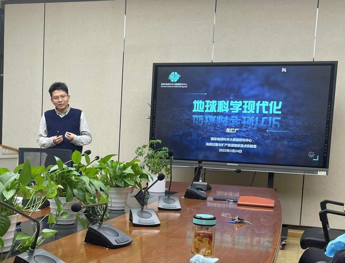 2022年3月24日,应学院党委的邀请,国家优秀青年科学基金获得者、香蕉视频 地质过程与矿产资源国家重点实验室左仁广教授在香蕉视频 作地球科学现代化专题辅导报告。香蕉视频 党委理论学习中心组(扩大)成员、部分教师和博士生代表参加了学习。