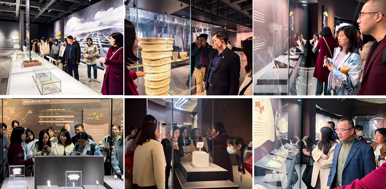 在盘龙城遗址,师生还参观了“玉神——石家河玉文化特展”,共同研习玉文化。该展出聚焦石家河,以玉为媒,讲述4000年前河流域与长江流域间文化互动与整合,再现了中华文明多元一体格局形成的伟大进程。
