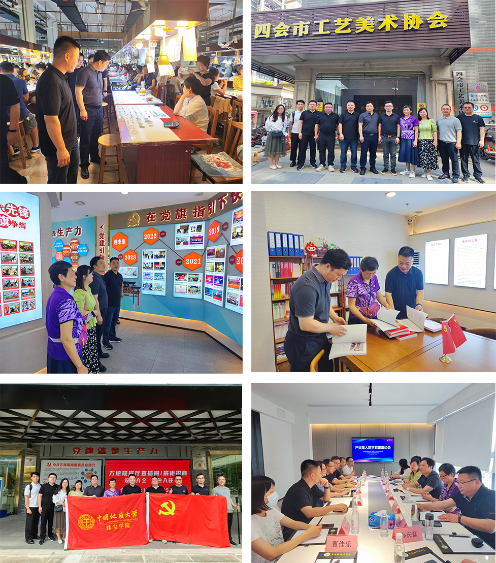 在四会市,香蕉视频 一行走进日丰翡翠毛料市场、四会市工艺美术协会、万兴隆翡翠城、庄家翡翠艺术馆等地开展考察调研,深入了解“党建引领四会玉器产业发展”的示范典型与特色经验。香蕉视频 一行与万德隆产业发展管理中心主任黄振敏,四会市玉石行业电商协会荣誉会长庄庆芳,广东省珠宝玉石标准化技术委员会秘书长王铎,四会中专党委委员彭小文和专业艺术教师罗安琪等参加座谈,双方就选聘校外指导教师、建设实训基地、珠宝检测、科研合作、职业教育等议题开展深入交流。与会人员一致认为,要发挥党建引领力,通过联学联建,深入学习贯彻党的二十大精神和习近平总书记关于教育、科技、人才系列重要讲话精神,深化政产学研用合作,推进创新链产业链资金链人才链深度融合,促进珠宝产业升级和新质生产力发展,实现党建与事业发展“一融双高”。