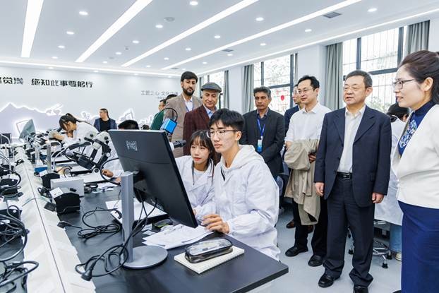 10月22日,与会领导、专家、学者以及企业代表赴青岛幼儿师范高等专科学校、中国(国际)矿晶科技博物馆进行实地考察。考察团参观了青岛幼儿师范高等专科学校的数智商贸实训室,观看了美育教学成果展演,对青岛幼儿师范高等专科学校的珠宝鉴定实训室、媒体企划实训室、非遗技能实训室、直播营销实训室、技能大师工作室等17个实训场所进行了观摩。在中国(国际)矿晶科技博物馆,考察团实地察看了各类珍石、矿石标本,深度参与了融入现代高科技声光电的互动体验,并进行了深入学术交流。(通讯员:曹佳乐、陈超洋等 摄影:刘浩城)