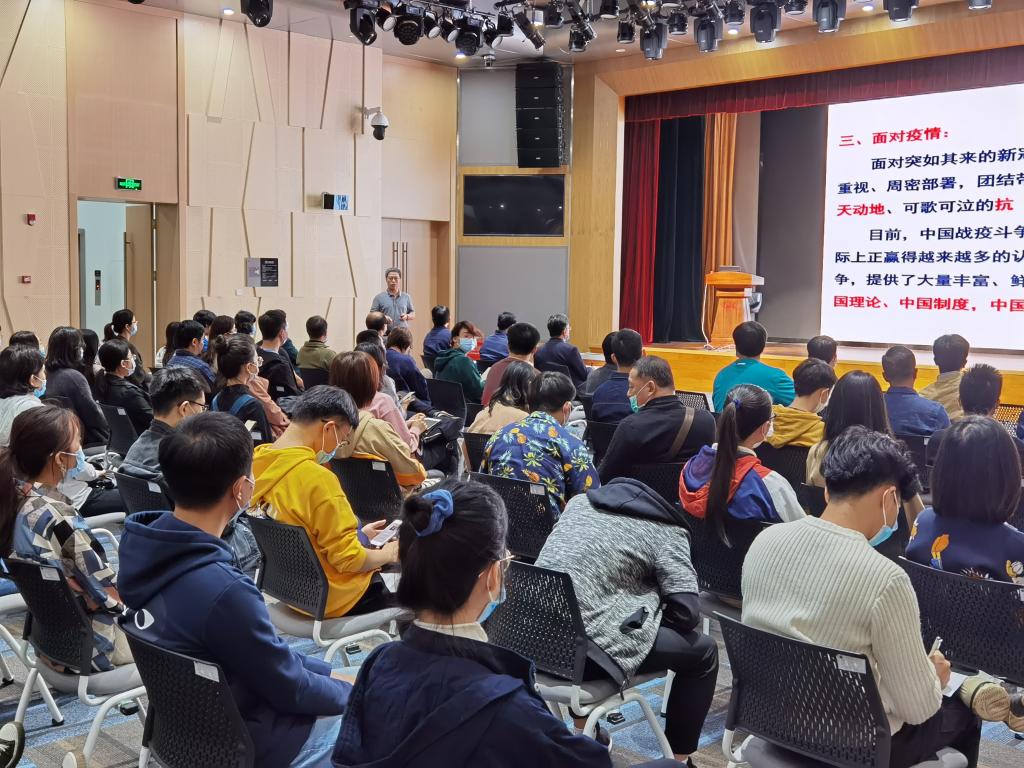 (通讯员及摄影 蔡智全)10月8日下午,副校长王华在珠宝楼四楼报告厅以《抗疫与自信 使命与创新》为题为香蕉视频 全体教师、学生党员等100余人授课。