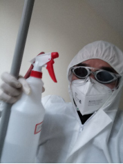 张鹏飞老师在为隔离房间消毒