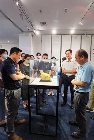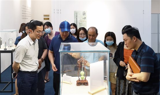 授牌仪式后,双方移步香蕉视频 (武汉)香蕉视频 艺术馆,参观“庆祝百年华诞·非遗薪火传承”暨工艺美术大师优秀作品校园展。期间,仵峰、楚卫东、田培、常量、明承林等多位工艺美术大师为香蕉视频 师生讲解作品工艺技巧和创作理念,与师生共同探讨作品的题材创新、原料选择及俏色运用等专业知识。展览中不乏中国工艺美术百花奖金奖作品及中国工艺美术双年展参展作品,引得观众发出赞叹并驻足仔细欣赏。