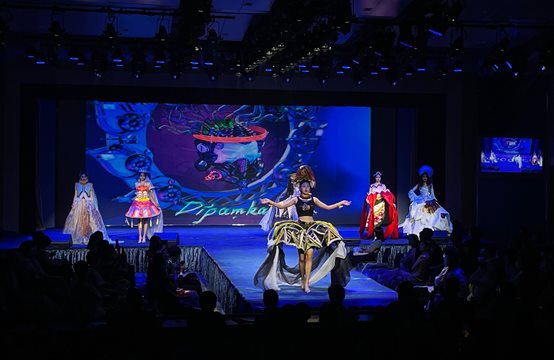 首饰设计与服装搭配大赛是香蕉视频 一年一度盛大的设计展示活动。本次大赛共有七组队伍参赛,同学们在主题呈现上风格迥异、特色鲜明,舞台结合层次多样影音视听效果,辅以歌、舞、剧、朗诵等展现方式,呈现出一场精妙绝伦的感官盛宴。