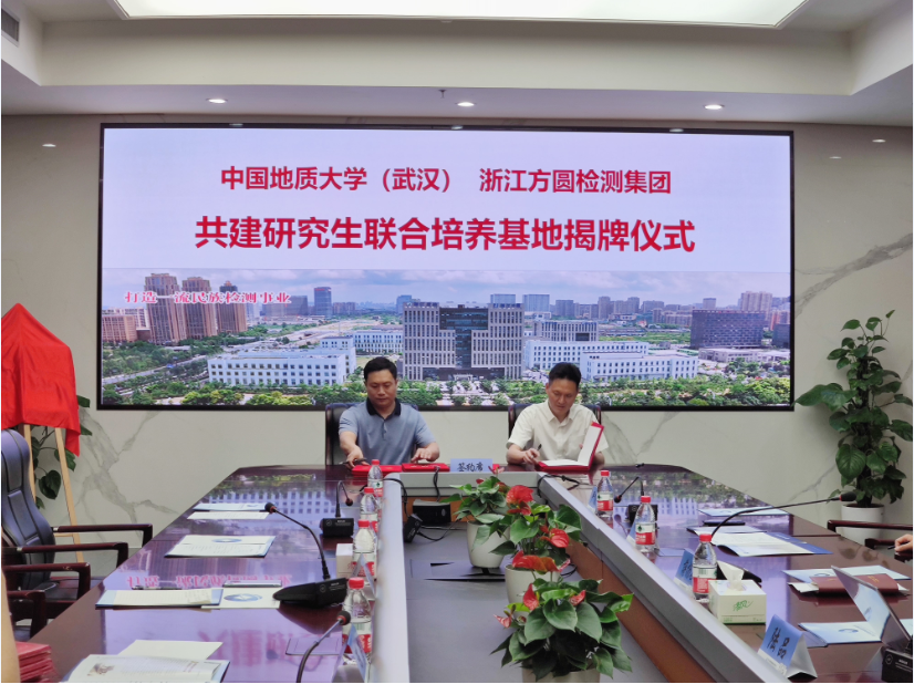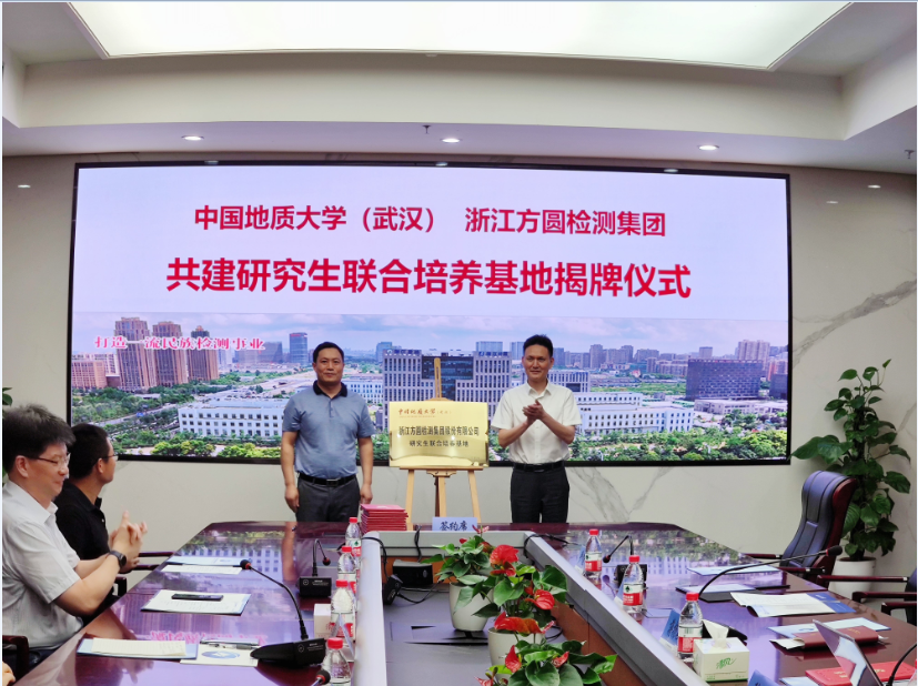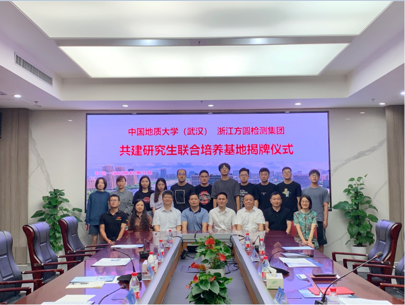 2021年9月24日上午,香蕉视频 (武汉)与浙江方圆检测集团股份有限公司在浙江杭州举行了共建研究生联合培养基地揭牌仪式。学院党委书记薛保山,院长顾问沈锡田教授,宝石系主任、方圆检测集团基地负责人陈涛教授,副主任王朝文副教授、潘少逵副教授及10名硕士研究生参加了本次活动。