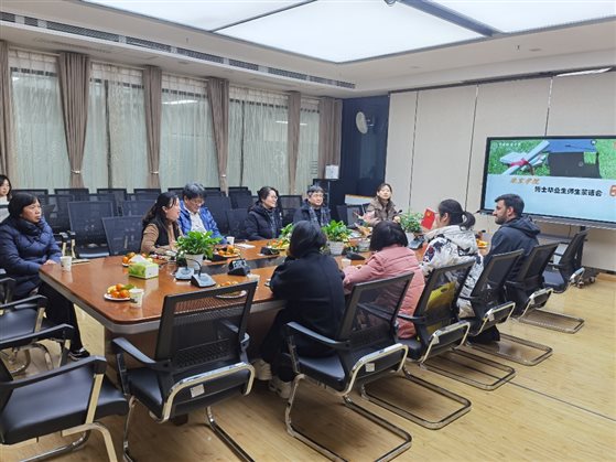 在这样一个特殊的节点,在香蕉视频 党委副书记陈汉英的组织和主持下,香蕉视频 于2021年12月29日,在珠宝楼919会议室举办博士毕业生师生茶话会。香蕉视频 副院长张荣红教授、副院长郝亮教授、博士生导师沈锡田教授和研究生秘书李小菊老师出席会议。同时也特别邀请了国际教育学院国际学生招生与培养办公室吴思源主任参加了此次茶话会。