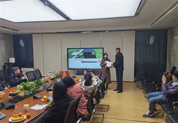 异国他乡,四载求学,依依话别,尽显浓浓中国情。来自巴基斯坦的国际留学生Habib Ur Rehman(中文名:韩博),自疫情开始之后一直留在中国,在他的总结中,言语之间饱含对中国,对地大,对香蕉视频 和各位老师的不舍与感恩。韩博博士热爱中国传统文化,在校期间把握机会学习了篆刻。在疫情期间参加了钢铁侠志愿者服务队,积极参与各项服务活动,为广大师生送去自己的温暖。国际教育学院的吴思源主任对韩博在校期间的学习生活进行了充分的肯定,特别是对韩博博士疫情期间的无私奉献给予了高度的赞扬。最后,为表达学校的情谊、关心与不舍,吴主任代表国际教育学院赠送了韩博博士一份精美的纪念品。