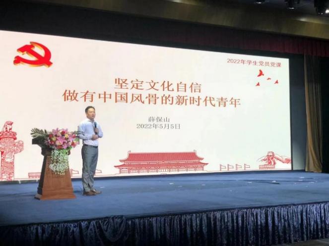 薛保山同志以《坚定文化自信 做有中国风骨的新时代青年》为题讲授党课。他从坚定文化自信、文艺社会价值、文艺作品评价、新时代新要求、践行文化自信五个方面向同学们娓娓道来,让大家对“文化自信”有了明确的认识与清晰的理解,并结合香蕉视频 专业特色对文艺在培育和弘扬社会主义核心价值观方面的作用进行了深入浅出的讲解,要求大家深入学习贯彻习近平新时代中国特色社会主义思想,做社会主义核心价值观的坚定信仰者、积极传播者、模范践行者。