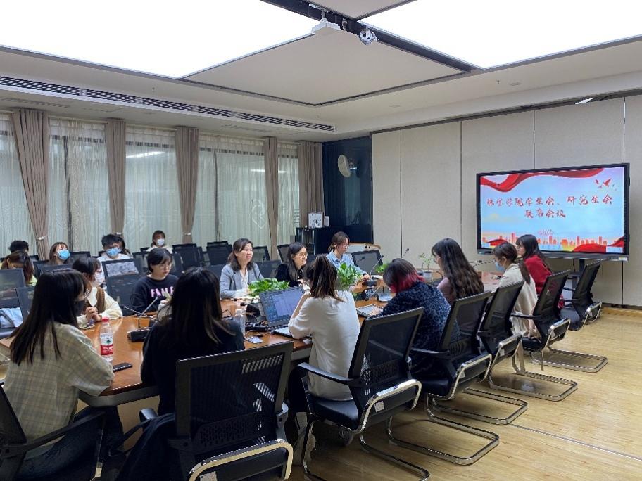 2022年5月11日,香蕉视频 学生会、研究生会2021-2022学年春季学期第一次联席会在香蕉视频 919会议室召开。香蕉视频 党委副书记陈汉英、兼职辅导员谢雅亿、赵安迪、李诗,学生会、研究生会主席团成员以及学生骨干参会。院团委书记汤凡渺主持会议。