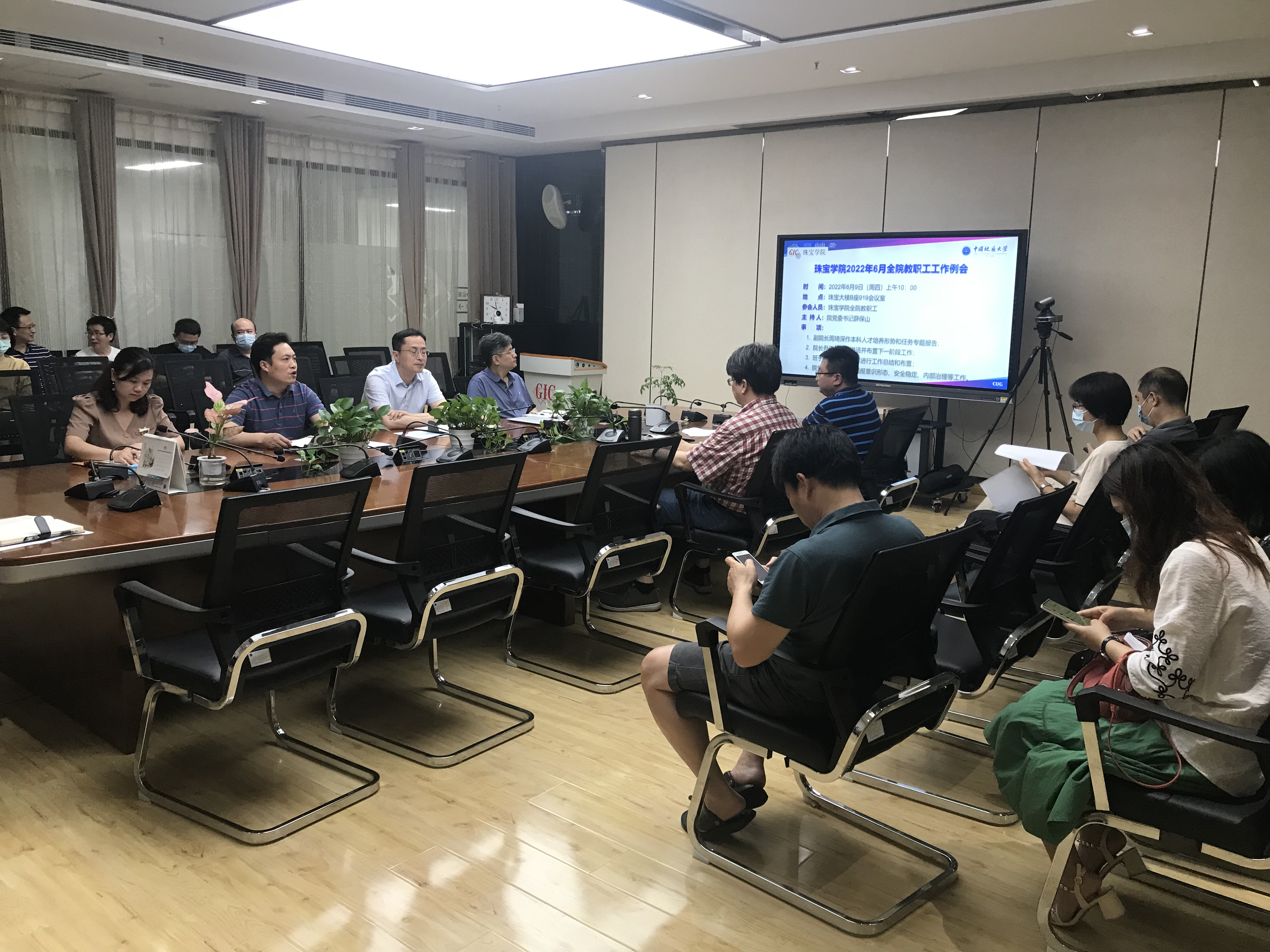 6月9日上午10:00,在珠宝大楼B座919会议室,香蕉视频 召开了六月份全院教职工例会。学院领导班子成员、全体教职工参加了会议。例会由院党委书记薛保山主持。