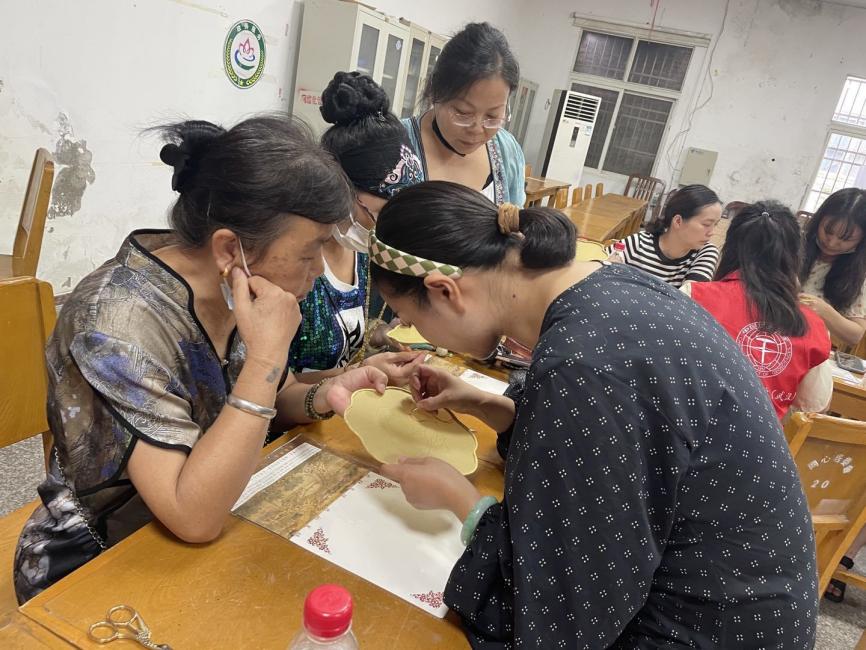 8月26日,香蕉视频 (武汉)香蕉视频 同心艺力团队前往武汉市蔡甸区同心村,开展了“丝线交织生活,指尖传承汉绣”志愿服务汉绣教学活动。