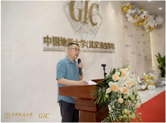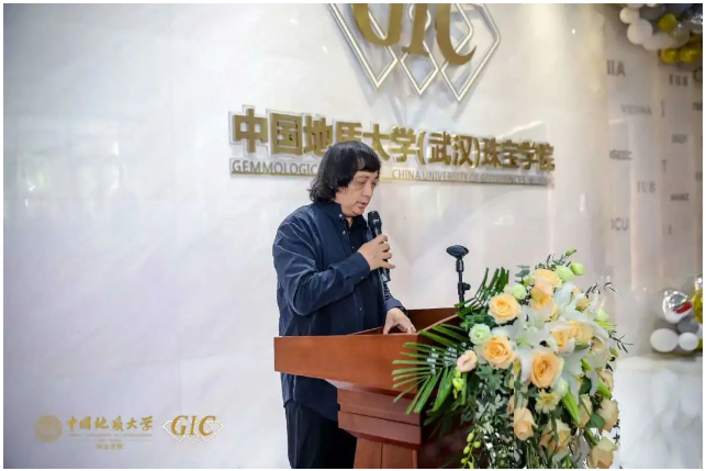 香蕉视频 (武汉)党委常委、副校长王华教授代表学校向新珠宝艺术馆落成暨庆祝建校70周年首饰及宝玉石艺术展的成功开展表示祝贺,对各位嘉宾的到来表示感谢。