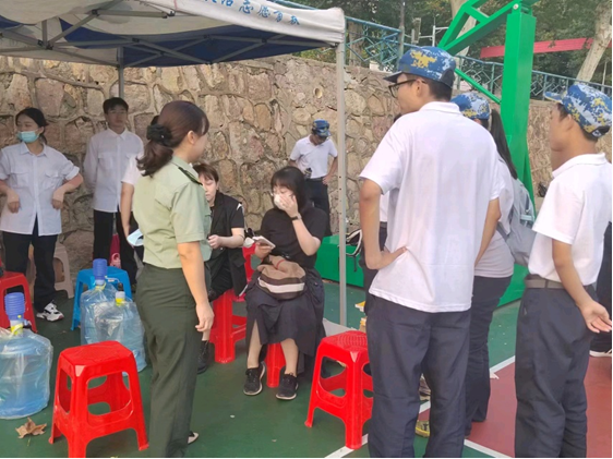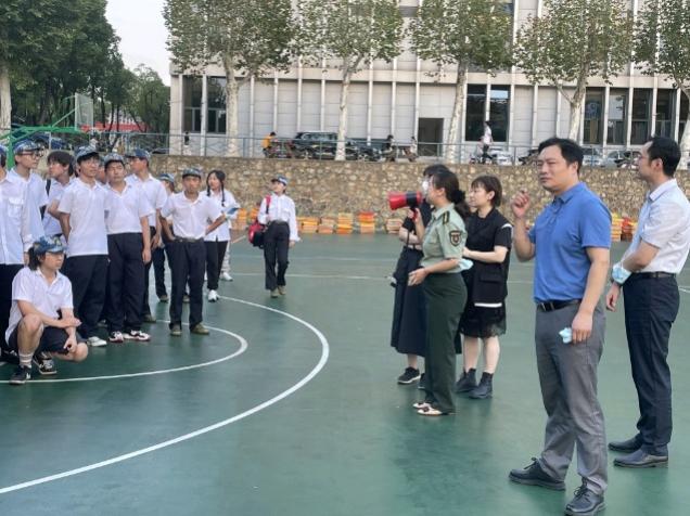 为了不打扰同学们的正常训练,尹院长、薛书记和老师们一直默默站在旁边陪伴着同学们军训。直到休息期间,老师们纷纷上前慰问同学们,表达学院对同学们深切的关怀。薛书记望着紧张排练的同学们感慨道:“快汇演了,看到现场同学们的表现,真的让我充满期待!”