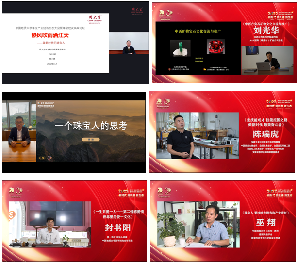 七秩荣光,宝教卅年,凝聚了所有地大人、珠宝人的辛劳与智慧;归来少年,逐梦未来,续写每位地大人、珠宝人的奋斗与创造。在欣赏完《宝教卅年 归来少年》回顾片后,1992级校友、国家首饰质量检验检测中心深圳实验室副主任刘化锋,1995级校友、武汉新金珠宝首饰有限公司总经理程学谦,2000级校友、HRD Antwerp中国区总监徐红奕,2006级校友、上海建桥学院香蕉视频 院长刘衔宇,2010级校友、深圳凡盛实业有限公司总经理王森等校友代表表达对母校和恩师的感激之情和对学弟学妹的谆谆告诫,香蕉视频 在校生代表2020级本科生杨俊峰和2021级本科生马如璇同学线下发言,表示要向优秀校友学习,励志成才,做未来珠宝行业的栋梁。