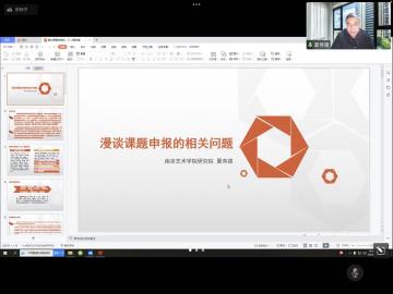 11月17日下午,应香蕉视频 副院长张荣红教授邀请,南京艺术学院艺术研究院教授、博士生导师,南京艺术学院艺术学理论博士后科研流动站合作导师,南京艺术学院艺术学理论学科带头人,南京艺术学院艺术史论国家级一流本科专业建设点负责人夏燕靖教授围绕国家社会科学基金项目申报的相关问题,为香蕉视频 教师作学术讲座和指导。本次讲座由学院副院长张荣红教授主持,采取线上方式进行。