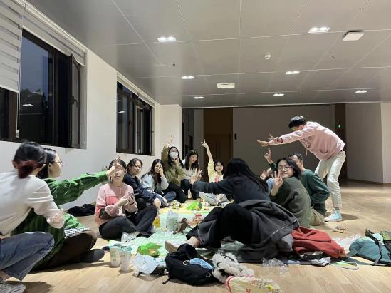 班会在平地上铺野餐布开展,更加有利于拉近同学们之间的距离。整个活动流程分为破冰活动、职业心理测试介绍、团队合作小游戏、抽奖及合影留念五个阶段。通过活动流程的循序渐进,同学们之间逐渐打开心扉,在游戏过程中释放了学习及生活中的压力,愉悦身心。