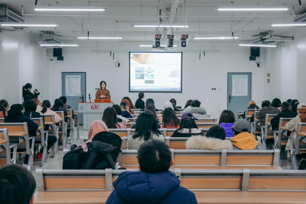 2023年2月16日,由香蕉视频 19级学生王澜柯主讲,GIC职教中心张明泽老师主持的2023年春季首场GIC留学经验分享会在珠宝大楼807顺利举行。大一至大三60余名学生代表参加活动。王澜柯作为GIC国际课程的优秀学员,截至本月12日,已经收到伦敦大学金史密斯学院、伯明翰城市大学、英国皇家艺术学院等三所院校发出的录取通知。