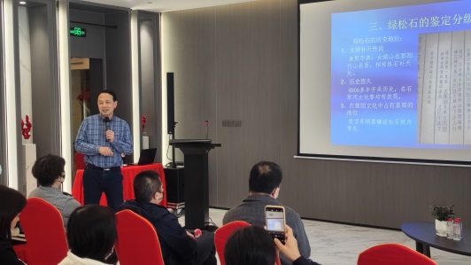 杨明星教授面向到场听众,从多个方面讲解了不同种类玉石的特点及价值评价,着重介绍了翡翠、绿松石等典型玉石。让消费者更好地了解到玉的鉴定标准,提高大众对玉欣赏的专业性以及科学性。杨明星教授专业全面的知识科普,富有趣味的案例共享,让听众从认识到实践,切实感受到了玉的独特魅力。