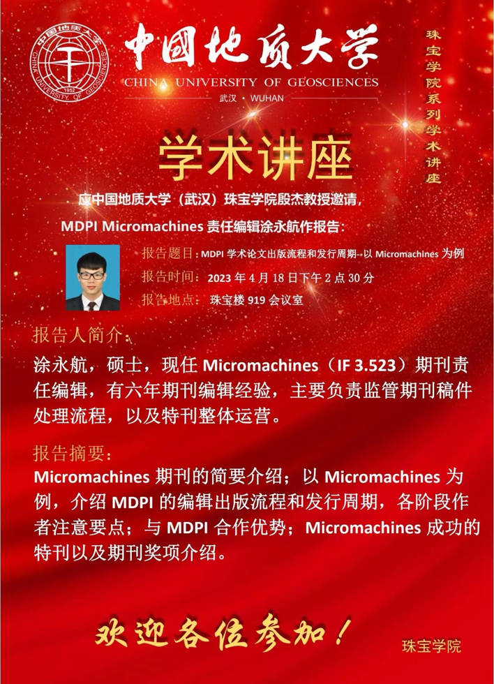 【学术讲座预告】MDPI学术论文出版流程和发行周期-以Micromachines为例