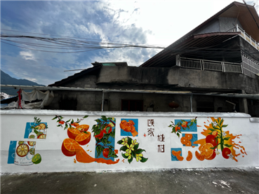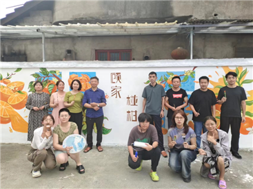 在“共绘青山”实践队中,张芳雅、刘志欣、龙怡然、李淑婷、张赞宇5名同学来自产品设计专业,杨俊峰同学则来自宝石及材料工艺学专业。在六天的墙绘施工期内,同学们宵衣旰食、朝乾夕惕,与山风骤雨抢时间,与酷暑烈日作斗争,每天都不辞辛劳、勤恳付出。面对突发困难与重重考验,他们勇于攀登、群策群力,利用自己的专业技能和艺术才华,终于如期完成了顾家坪村委会旁的墙绘作品。他们用色彩鲜艳的画笔,将当地土家族文化特色柑橘产业与乡村风貌融合在一起,为这片土地增添了一道独特的艺术风景线。
