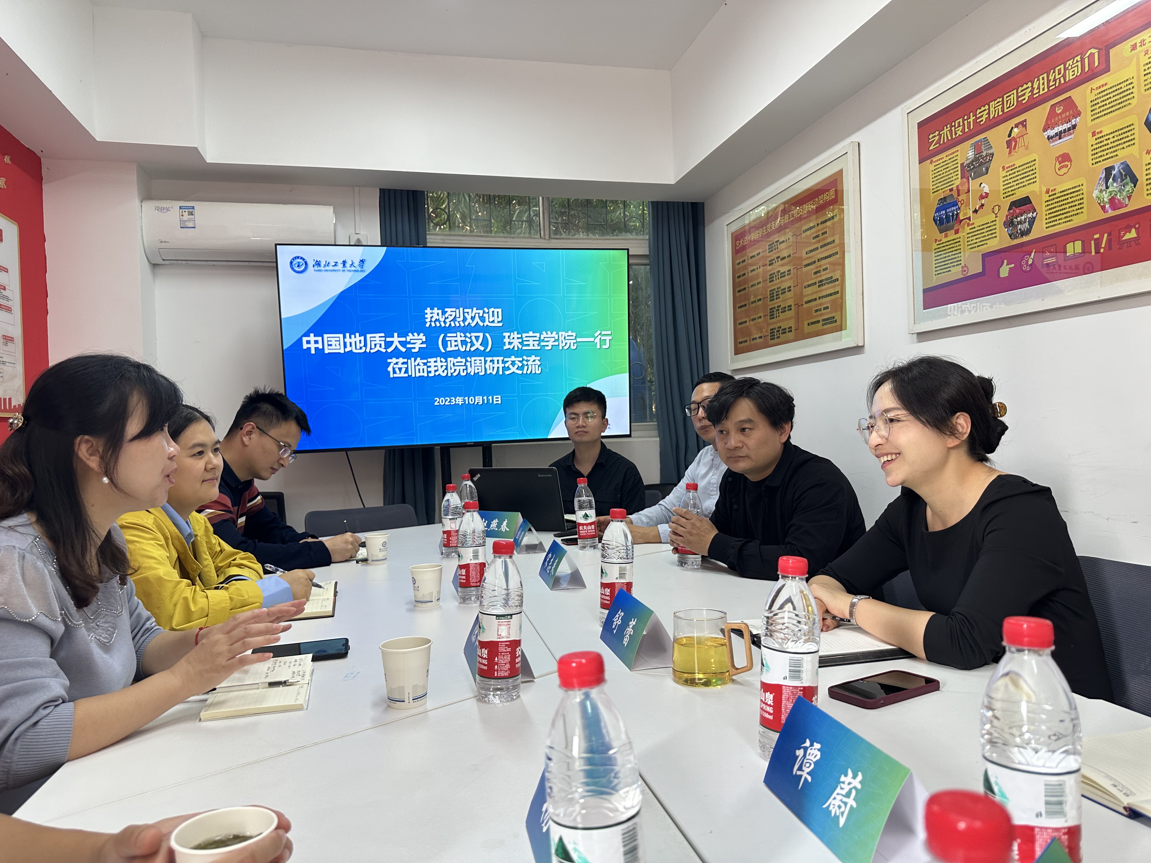 图 2 香蕉视频 考察组教师与湖工大艺术设计学院领导进行交流