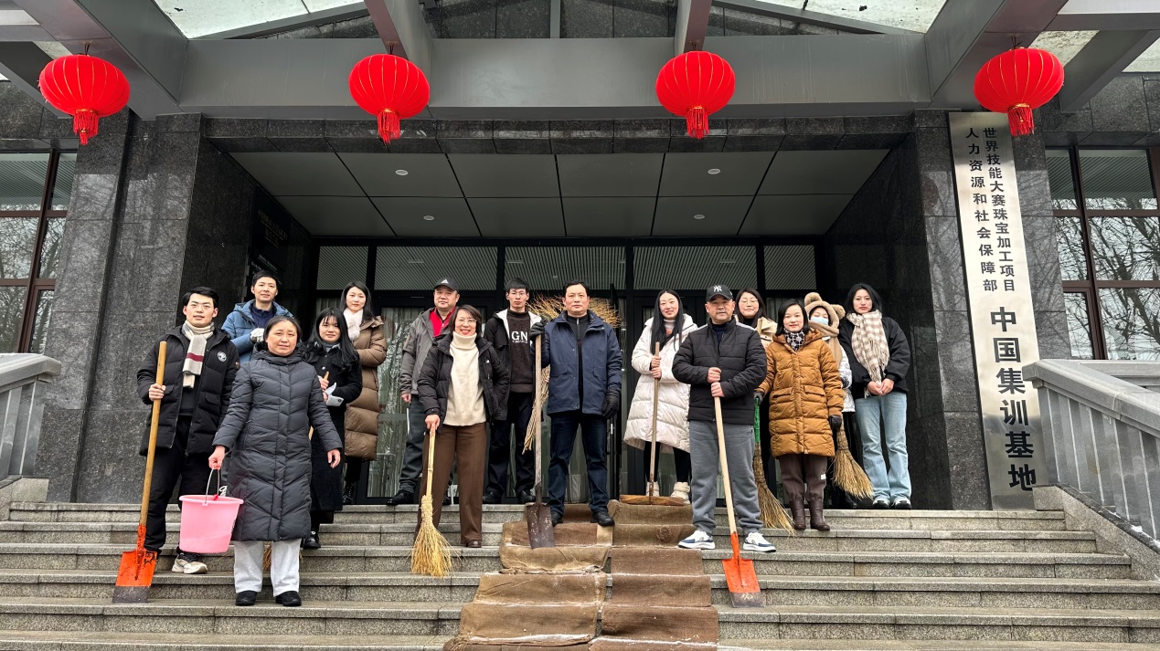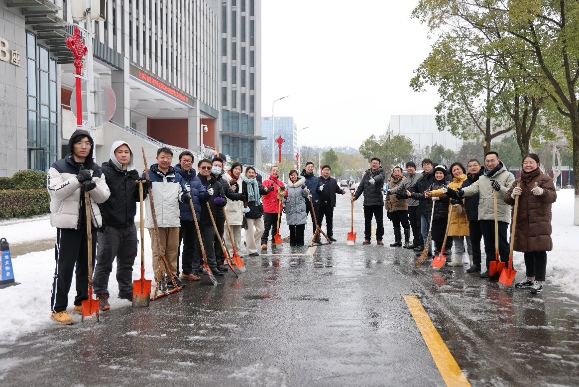 参与清理积雪工作的学院教职工合影