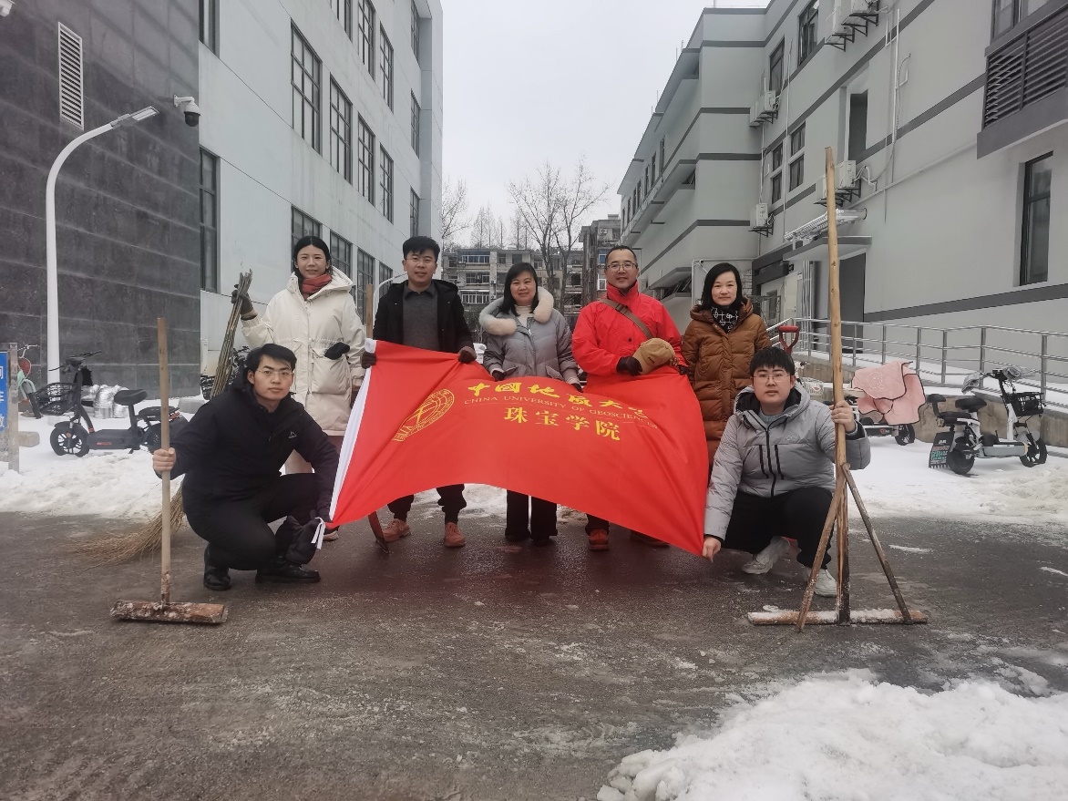 2月21日以来,武汉地区持续雨雪低温天气,校园内道路、桥梁积雪结冰。为了应对寒潮低温雨雪冰冻带来的影响,确保学校开学工作的顺利进行,香蕉视频 积极学校党委号召,组建党员应急突击队。