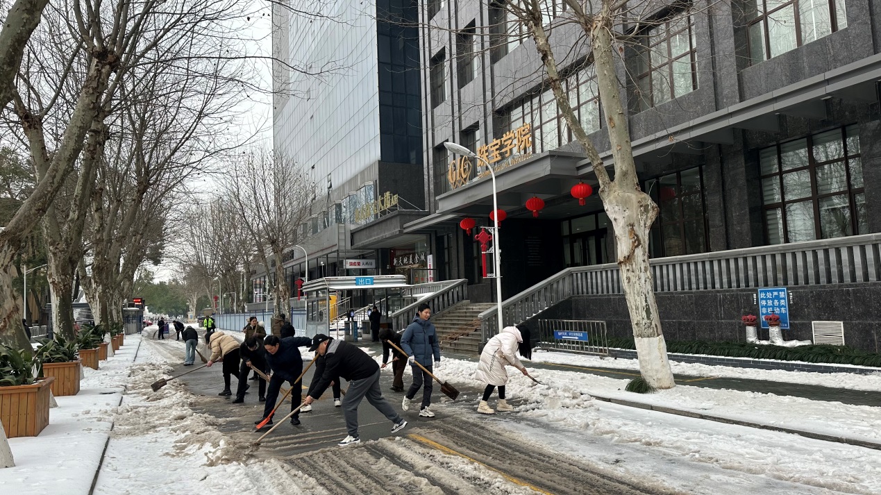 学院教职工清理积雪中
