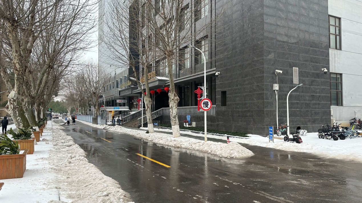 学院门前主干道积雪清理完毕现场