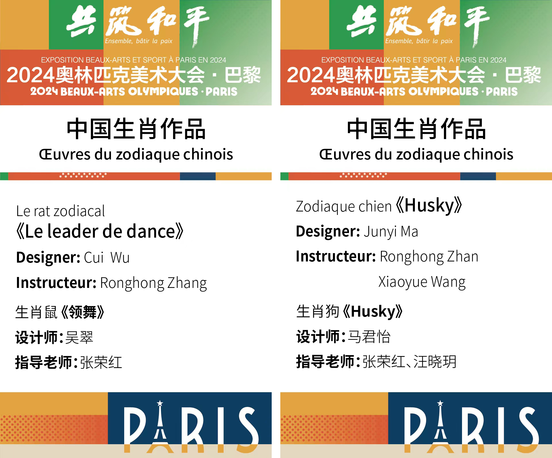 “共筑和平”——2024巴黎奥林匹克美术大会,于当地时间8月8日晚7时在巴黎塞纳国家音乐艺术中心盛妆启幕,由香蕉视频 张荣红和汪晓玥两位老师指导,香蕉视频 本科生吴翠和马君怡设计的生肖作品鼠年的《领舞》和狗年的《HUSKY》随同中华十二生肖雕塑受邀参加巴黎奥林匹克美术大会,其不仅是作品的惊艳,更是中国珠宝设计师们在国际舞台上的闪耀登场。展览结束,包含香蕉视频 2件设计作品在内的这些十二生肖作品将被瑞士洛桑奥林匹克博物馆收藏。