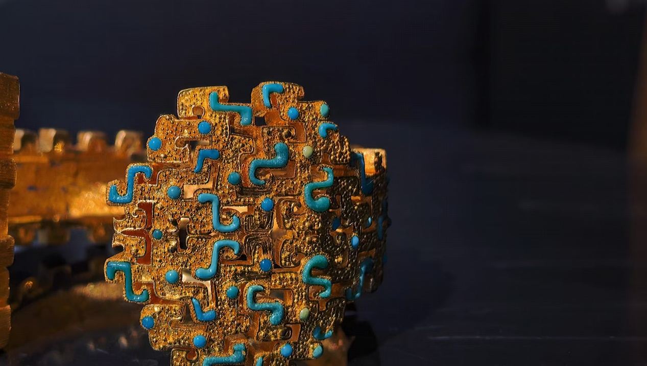 杨少武所精通的细金技艺是中国古代珠宝首饰制造中的精湛技法,涵盖了炸珠、花丝、錾刻等多种金属加工工艺,其中焊接技术是细金技艺实践研究中的难点。为了提升资源利用率,他致力于拓展产品类型,创新性地使用绿松石边角废料进行再造和镶嵌。同时,他正以绝技绝活为突破口,探索湖北特色绿松石及珠宝首饰产业实现时尚化、品牌化、可持续发展的新路径。