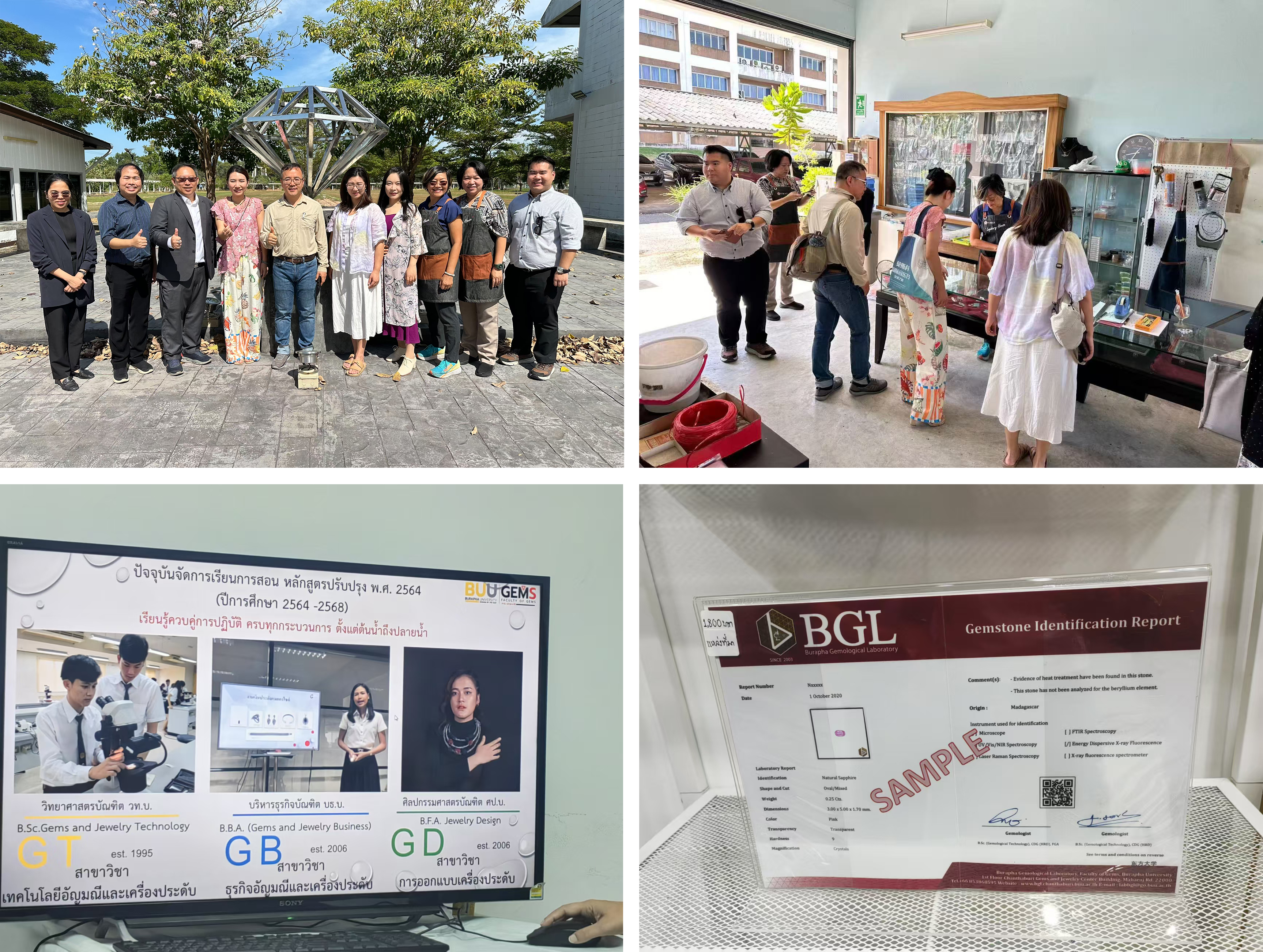 2024年12月4日至12月11日,香蕉视频 (武汉)香蕉视频 宝石系主任李妍教授、副教授余静、讲师张鹏飞和博士研究生闫冰赴泰国调研珠宝教育及产业。调研组访问了朱拉隆功大学(Chulalongkorn University)、泰国国家珠宝检测站(The Gem and Jewelry Institute of Thailand, GIT)、泰国东方大学(Burapha Univeristy)香蕉视频 (Faculty of Gem)及其宝石实验室(Burapha Gemmological Laboratory, BGL Lab) 。此次调研旨在全面了解泰国珠宝行业发展及人才培养现状,推进人才培养和科研的国际合作。