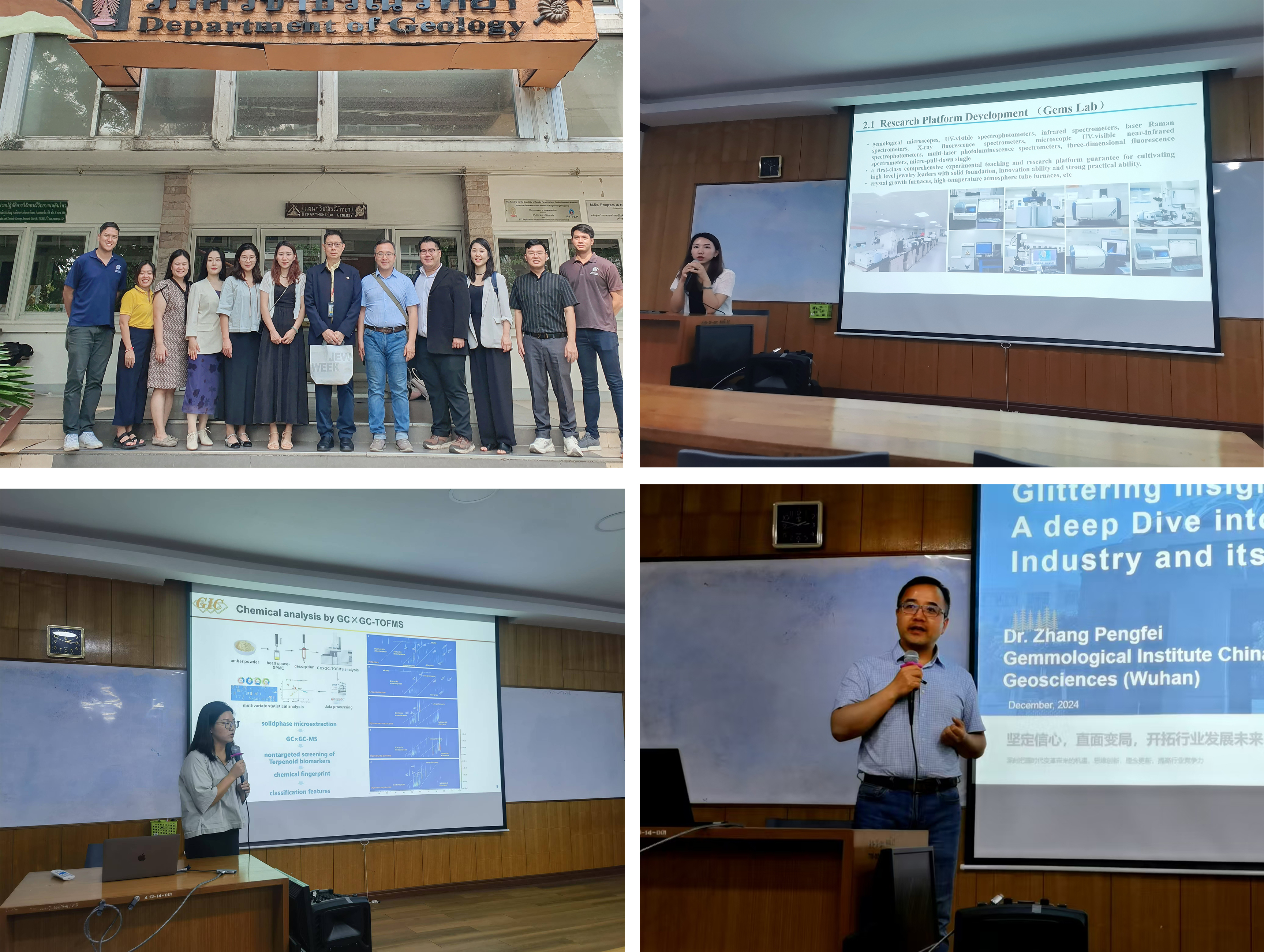 调研组受朱拉隆功大学前任副校长Chakkaphan Sutthirat教授邀请,在地球科学学院分别进行了主题为“Additive manufacturing of precious metals/Ceramics/Polymers for jewellery”、“Glittering Insights: A deep dive into China’s jewelry industry and its ascent”和“Comparative metabolomic reveals chemotaxonomic markers of resin fossils for identification of botanical origins”的学术报告,参观了实验室,就宝石学研究、创新创业人才培养等方面讨论了合作可能性,达成了国际留学生来华联合培养的合作意向。