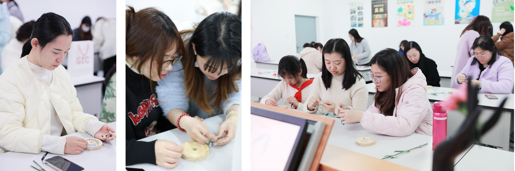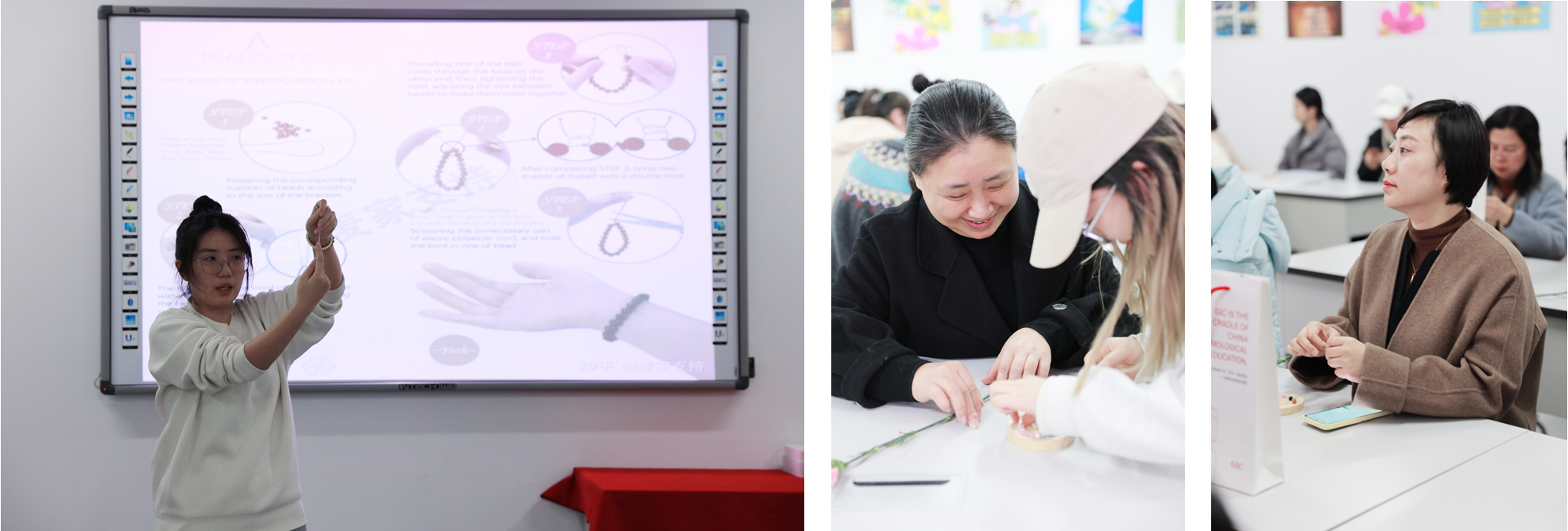 老师们一边聆听,一边动手实践,现场气氛热烈而温馨。大家相互交流心得,分享自己的串珠作品,彼此间的友谊也在活动中得到了加深。