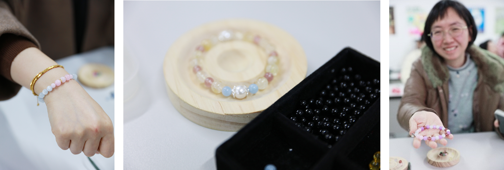 活动中,专业讲师不仅详细讲解了每种宝石的历史背景、文化寓意和宝石保养的小知识,还亲自示范了串珠的基本技巧和创意搭配方法。