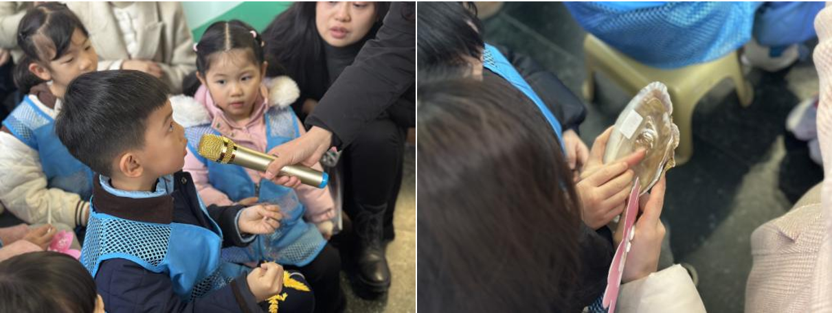 “原来蚌像妈妈一样孕育出珍珠!”科普课堂里,孩子们认真观察标本,专业教师以不同珍珠的蚌壳特点帮助孩子们区分珍珠品种,揭秘珍珠从沙砾到珠宝的科学原理,讲解akoya、南洋金珠、大溪地黑珍珠等品种的区别,分享各种不同珍珠的设计作品。