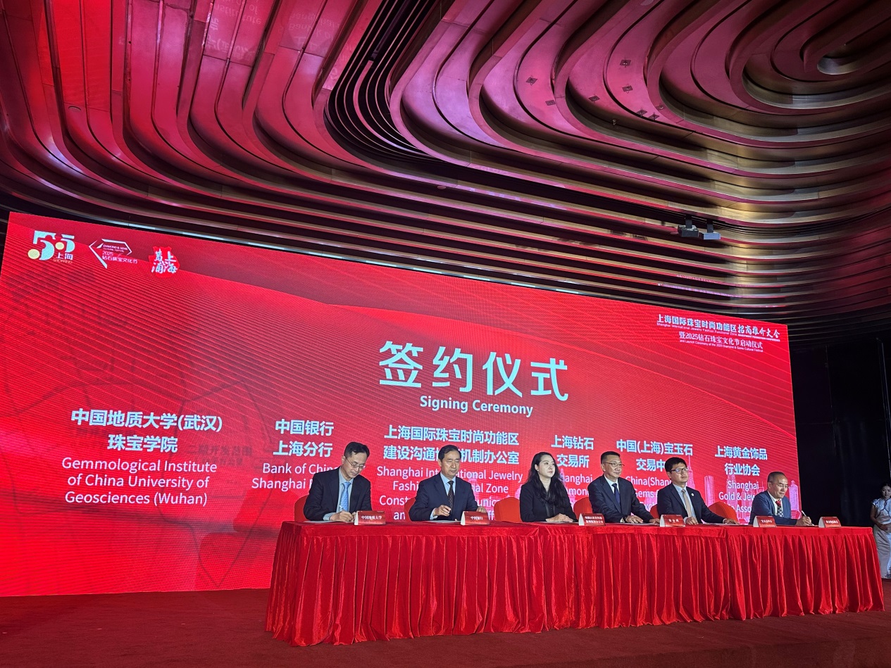 5月15日下午,院长尹作为、副院长陈全莉前往上海黄浦区,出席上海国际珠宝时尚功能区招商推个大合暨2025钻石珠宝文化节启动仪式,并现场与上海国际珠宝时尚功能区建设工作专班办公室签署了共建上海黄金珠宝研究院框架协议。双方将在研制黄金珠宝类标准、研究发布相关行业指数、建立珠宝工程技术研究中心、建设珠宝检测实验室、建设黄金珠宝职业教育基地、设立博士科研工作站和大学生实习实训基地、开展高端珠宝评估咨询、举办黄金珠宝国际设计大赛和珠宝国际学术会议等方面开展合作。