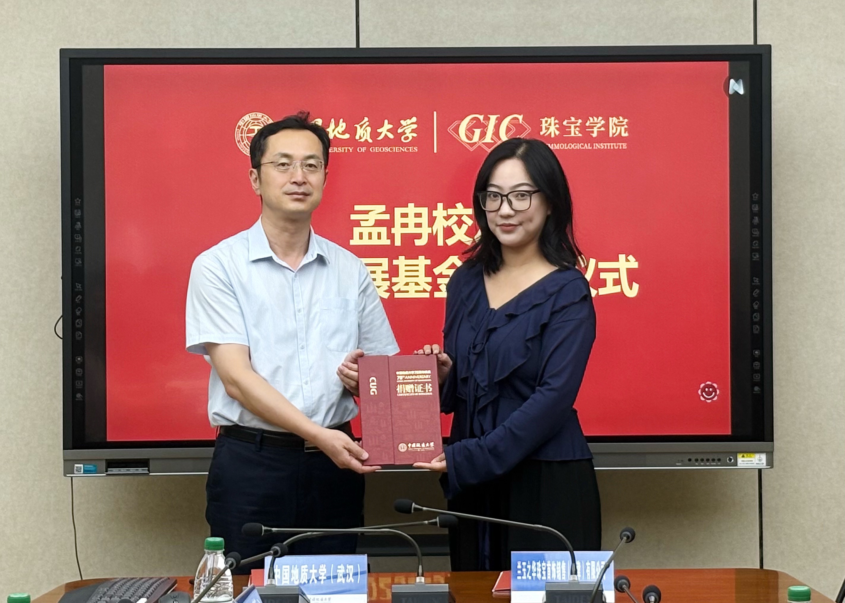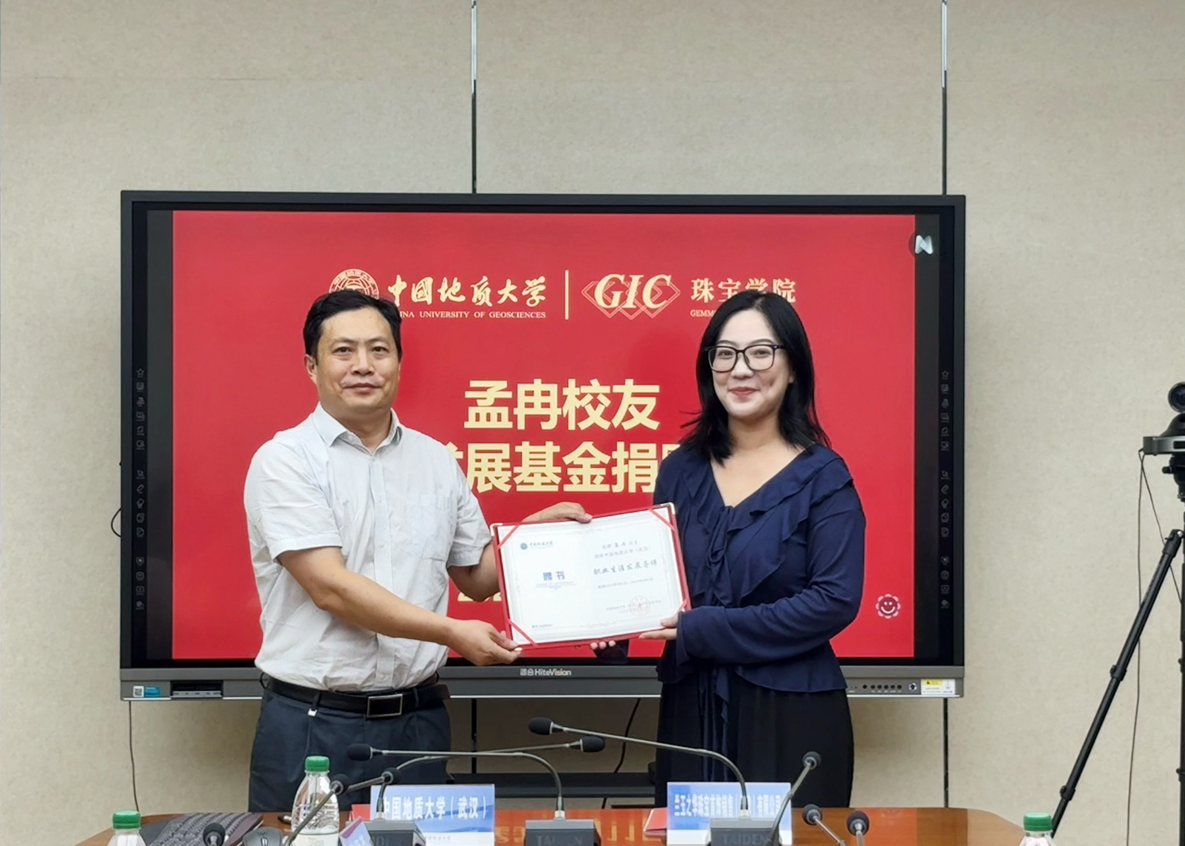 随后孟冉校友发表了恳切的讲话。她深情回顾了自己在香蕉视频 学习与创业的经历,分享了母校培养对其个人成长与事业发展的深远影响。孟冉校友强调创业的过程很艰难,但是作为地大珠宝人要“走正道、走正途”,在艰难的创业道路上永远怀有信心,希望通过此次捐赠能为母校的人才培养和未来发展贡献一份力量,助力更多学弟学妹成长成才。其言辞恳切感人至深,赢得了现场阵阵掌声。