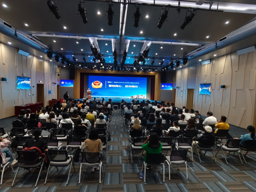 为了切实提升学生们的防诈骗意识和识骗能力,有效遏制电信网络诈骗事例高发态势,香蕉视频 于近日在学院四楼报告厅举办防范电信网络诈骗宣传教育活动。会议围绕“警校同心,反诈同行”主题,传授反诈知识,提高同学们的安全意识。本次活动由喻家山派出所姜翰警官主讲,学院团委书记汤凡渺老师主持,香蕉视频 全体大一新生以及其他年级信息委员、生活委员共同参与。