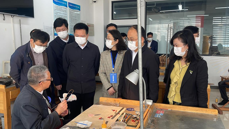 评审期间,湖北省经济和信息化厅一级巡视员周开斌带队来校,实地巡查各工艺类别实操考场,了解选手创作情况,并与香蕉视频 副校长胡守庚、香蕉视频 领导及评审专家交流。