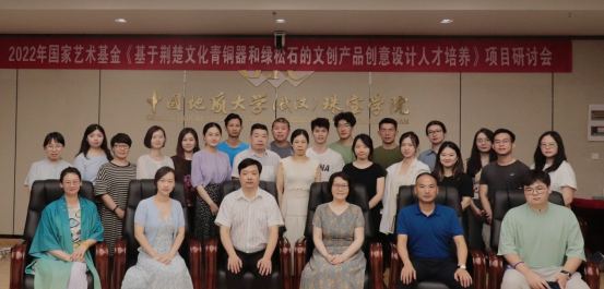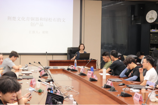 期间项目还特别邀请湖北省文物事业发展中心资源利用处处长彭放,湖北省文物事业发展中心资源利用处一级主任科员孙立,湖北省荟文科技股份有限公司总经理胡海,湖北省荟文科技股份有限公司运营总监李竞等专家开展了《基于荆楚文化青铜器和绿松石的文创产品创意设计人才培养》项目研讨会,会议分析了湖北省文博文创产品开发工作思路及文化产业市场现状,并对湖北省文创产业及文创设计的发展趋势进行研讨交流。