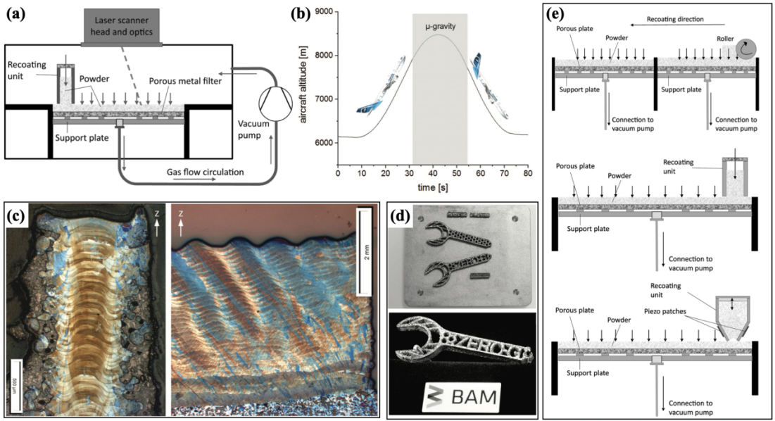 (1)微重力的影响与模拟测试:1)气流辅助法改善微重力条件下粉末难沉淀问题;2)采用喷粉激光熔融技术,避免使用粉床基底。