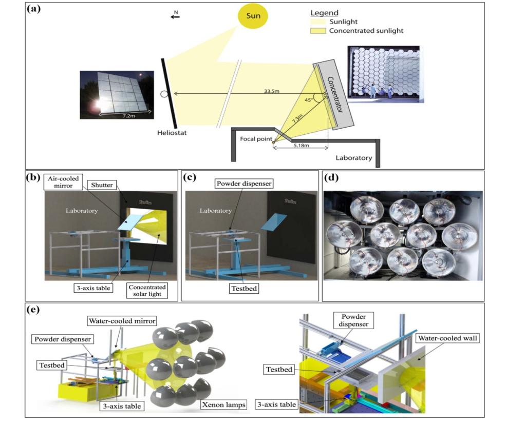 (e)太阳模拟器实验装置的3D示意图