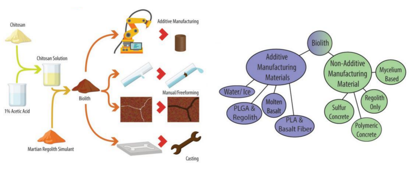 风化土是在月球或火星表面建造栖息地和物体的就地自然资源。本文首先介绍了可应用于月球/火星的几种增材制造技术的最新研究,包括增材制造过程的环境影响(如温度、重力和真空)以及就地材料利用,重点是月球/火星土壤的特性、选矿和处理。