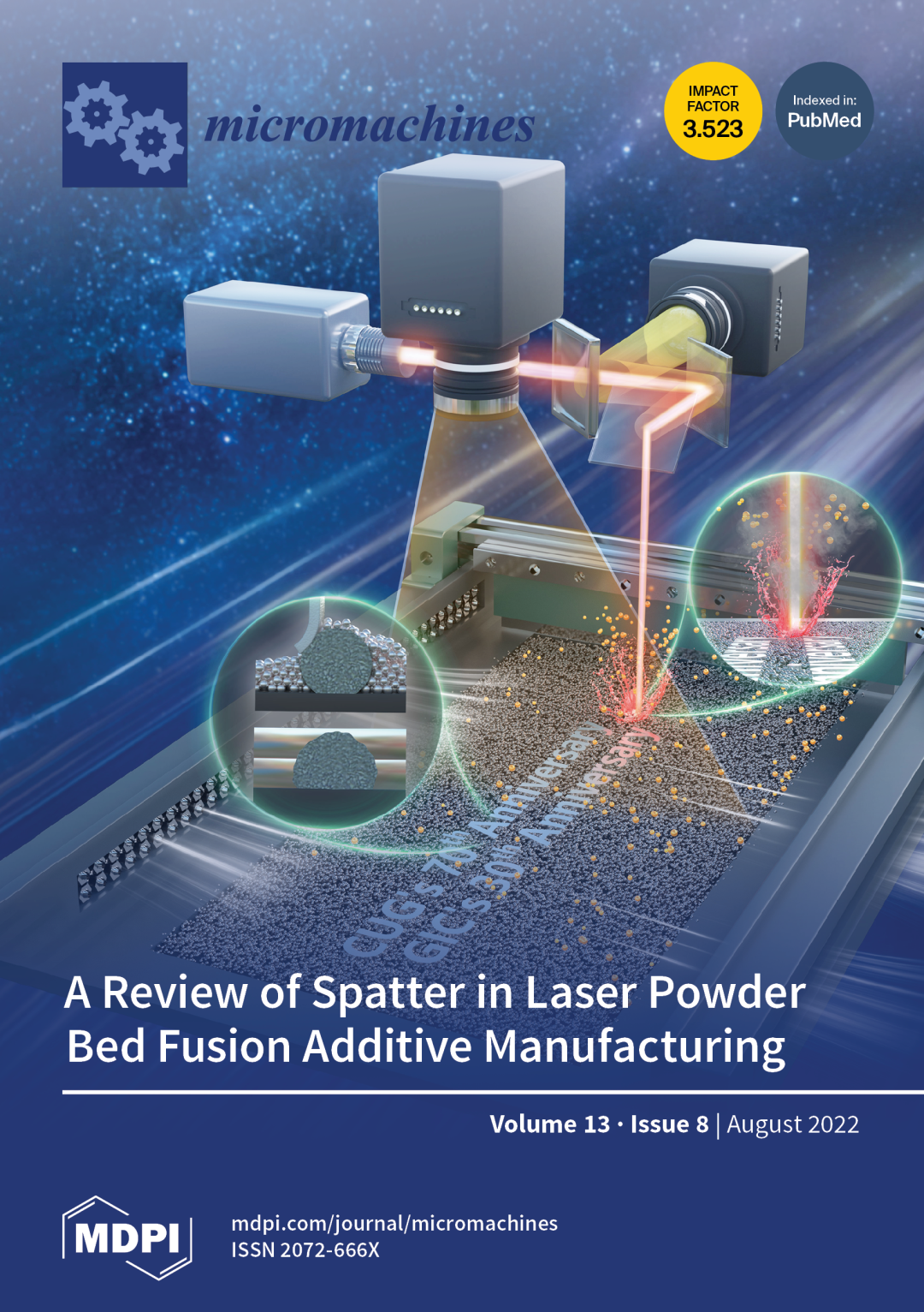 香蕉视频 (武汉)联合清华大学、华中科技大学、广州德擎光学科技有限公司、鑫精合激光科技发展 (北京) 有限公司、武汉科技大学、重庆大学、宁波大学、首都航天机械有限公司、上海航天精密机械研究所、南京铖联激光科技有限公司、瑞典查尔姆斯理工大学等国内外“增材制造与激光制造”领域优势单位精心打磨、共同合作,在Micromachines上发表了综述,从本期208篇文章中脱颖而出,入选期刊封面文章。文章回顾了 LPBF 中飞溅的原位在线监测技术发展;较全面地阐述了飞溅产生机理、影响危害及其应对策略;综述了冷/热飞溅的多源监测技术,并在此基础上提出了针对飞溅出射全周期的在线监控与应对措施,为新一代高效智能 LPBF 系统发展奠定了基础,具有重要的科学意义与工程应用价值。